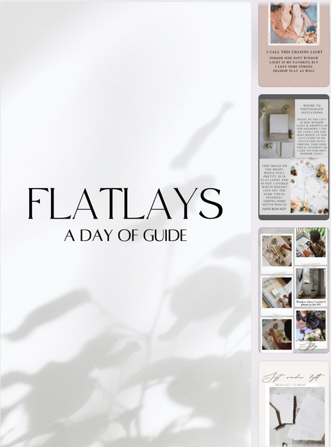 DO YOU FEEL LIKE YOU STRUGGLE WITH FLAT LAYS ON WEDDING DAYS? DO YOU FEEL SHORT ON TIME AND RUSHED? IN THE MOMENT OUR CREATIVE MINDS CAN SOMETIMES SHUT DOWN UNDER PRESSURE. I HAVE CREATED A QUICK ACCESS HOW TO GUIDE THAT SHOWS YOU FLAT LAY GUIDES AS WELL AS TIPS AND TRICKS ON FINDING THE LIGHT AND STAGING YOUR DETAILS!